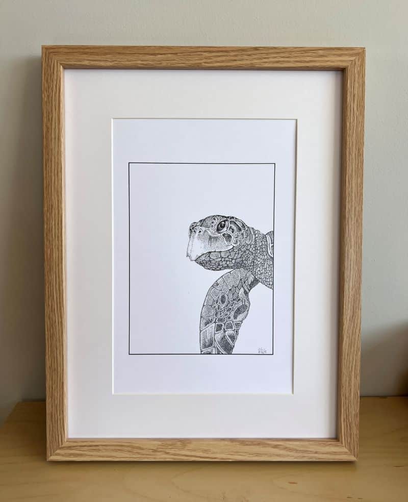 Je réalise des dessins en pointillé (stippling) et au trait, exclusivement au feutre noir sur papier. Chaque œuvre est ensuite imprimée en format A4 ou A3, proposée encadrée ou non, selon vos envies. Ces créations fines et délicates célèbrent la mer, la faune marine, les paysages naturels et les détails poétiques qui nous entourent.