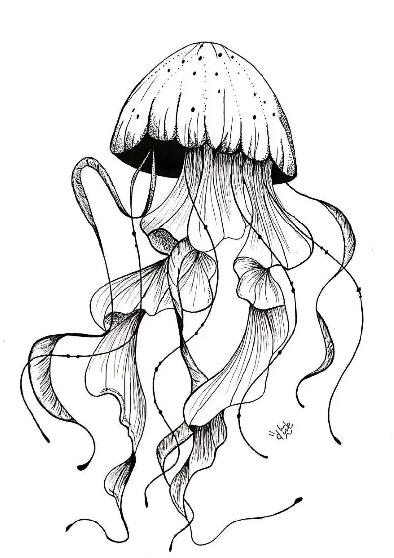 Méduse – dessin au feutre noir inspiré du monde marin